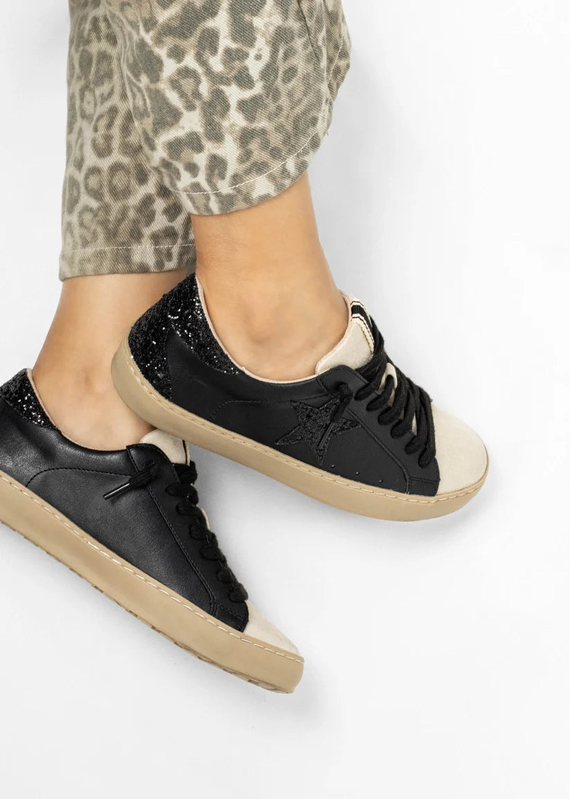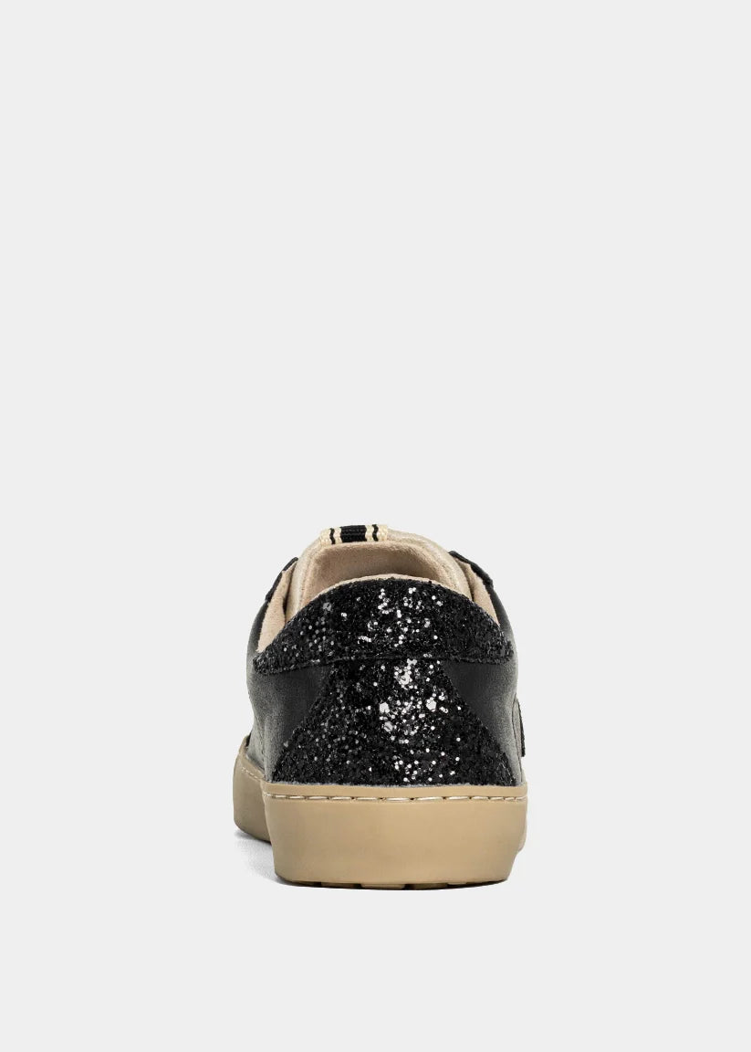 Edgy meets elevated. The PAULA in Charcoal is your go-to for a sleek, city-inspired look. Its deep slate grey upper, black glitter heel tab, and tonal star bring drama without losing its easy-going attitude. Whether you're pairing it with an all-black outfit or playing with contrast, this sneaker makes every step cooler.